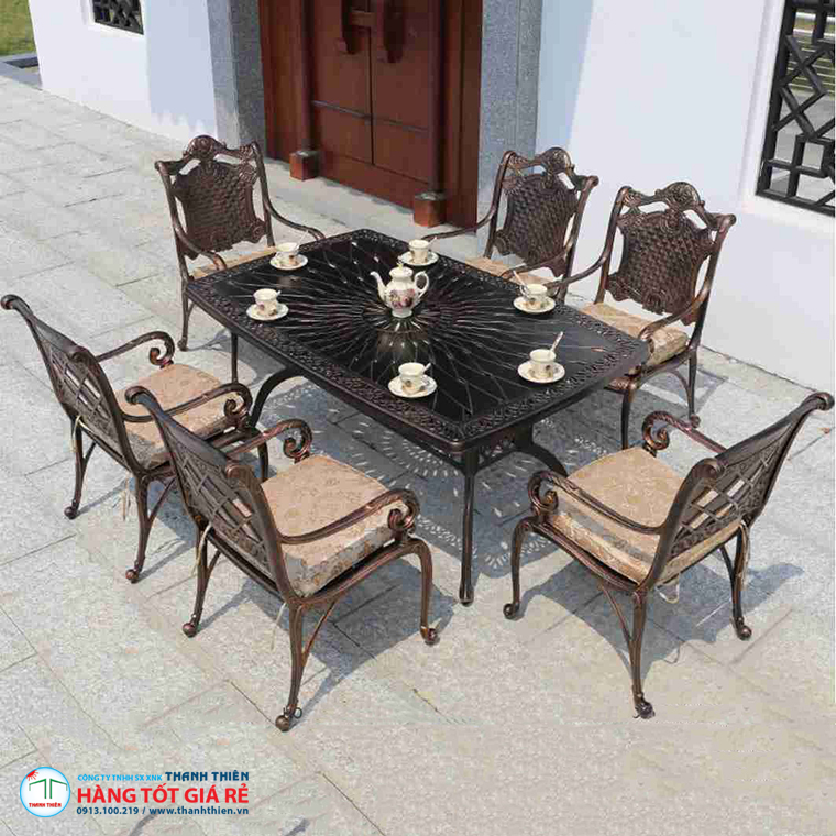 - So với các công ty khác trên thị trường rõ ràng mức giá mua bộ bàn ăn 6 ghế nhôm đúc GN090 tại công ty Thanh Thiên hấp dẫn hơn rất nhiều. Thậm chí với khách hàng mua số lượng lớn còn được chiết khấu cao từ 15 đến 30%.