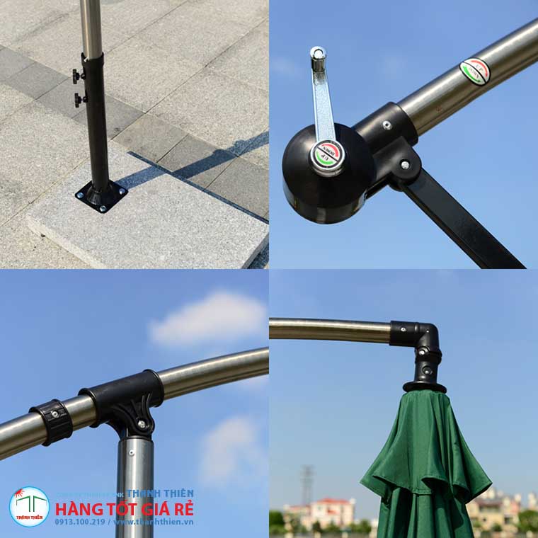 Ngoài ra, Dù lệch tâm treo ODU 034 còn được trang bị các tính năng tiện ích như đèn led, hệ thống loa Bluetooth, điều khiển từ xa, giúp tăng cường tính tiện nghi và sự thoải mái cho người dùng. Nhờ vào những tính năng này, dù Cantilever trở thành một trong những lựa chọn yêu thích của các khách hàng yêu thích không gian ngoài trời.