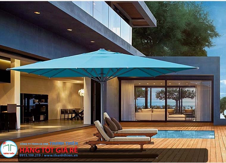 Với kích thước lớn, dù vuông trụ giữa là sản phẩm thích hợp sử dụng cho các bãi đỗ xe, bể bơi, bãi biển, các khu vực vui chơi ngoài trời…