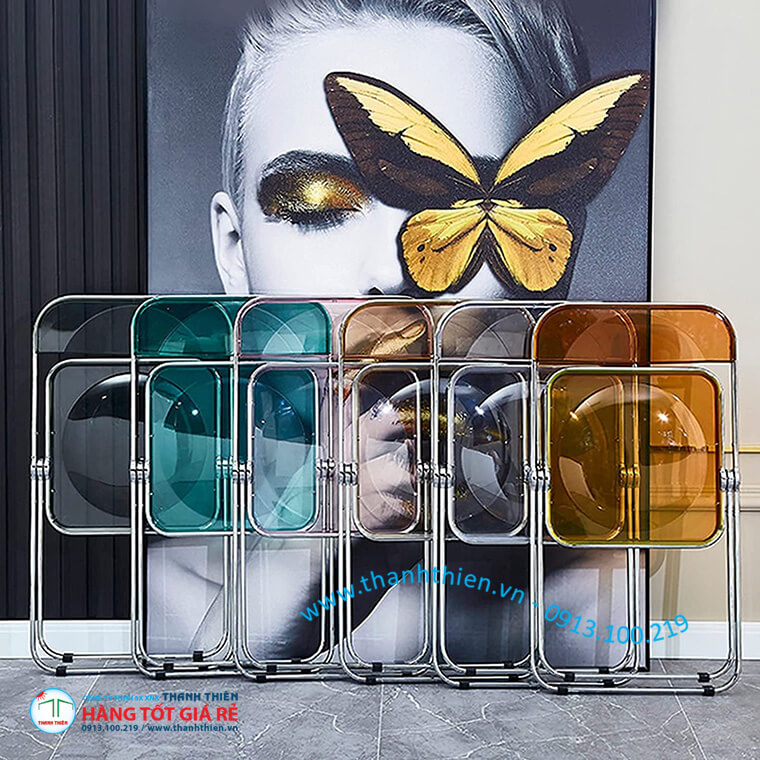 Đa dạng về màu sắc và kiểu dáng: Ghế gấp trong suốt acrylic có sẵn trong nhiều màu sắc và kiểu dáng khác nhau. Bạn có thể lựa chọn theo phong cách và sở thích riêng, tạo điểm nhấn cho không gian nội thất và thể hiện cá nhân của mình.