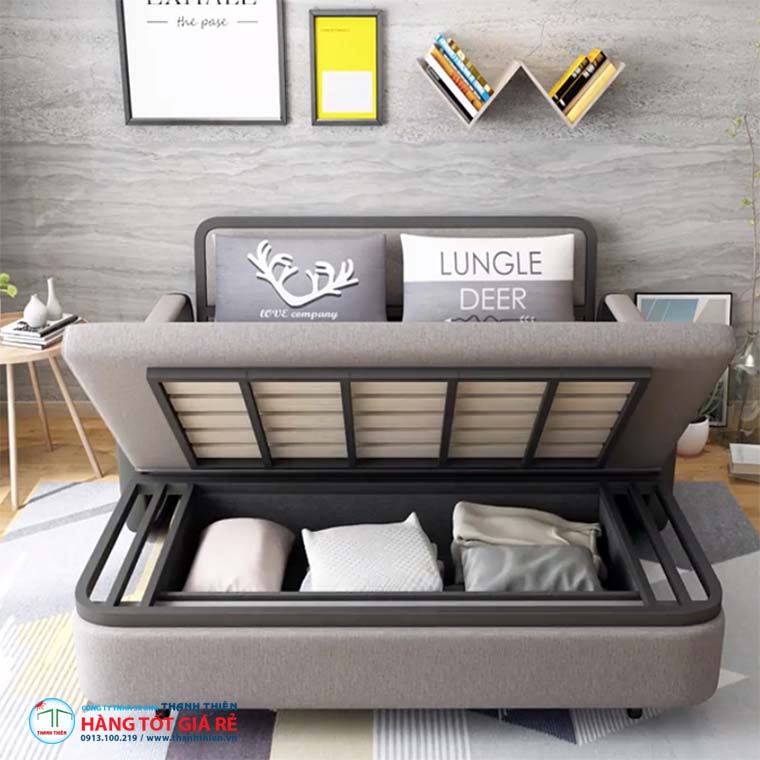 Giường Sofa Đa Năng Gấp Gọn, Ghế Sofa Thông Minh Có Ngăn Chứa Đồ Nệm Bọt Biển Khung Thép Không Gỉ KT 1m3 x 1m9