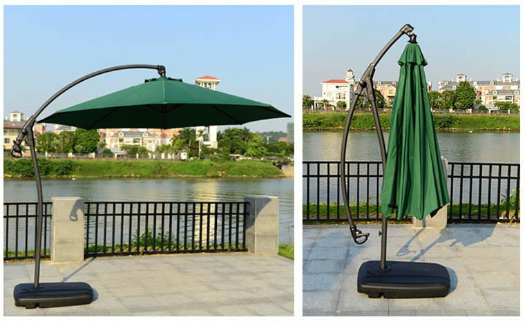 Thông thường ở phần trên của dù lệch tâm tròn có phần đòn bẩy để mở tán dù. Lúc này bạn hãy dùng tay nắm kéo dù từ từ mở rộng tán dù rồi nâng dù xuống phía dưới. Chỉ cần đơn giản như vậy là dù sẽ dần mở ra như ý.