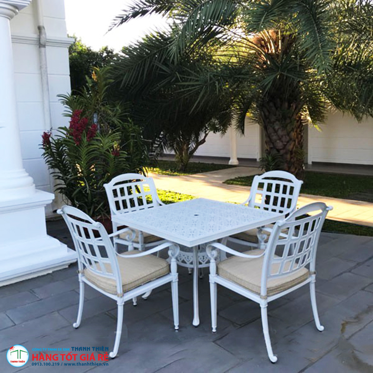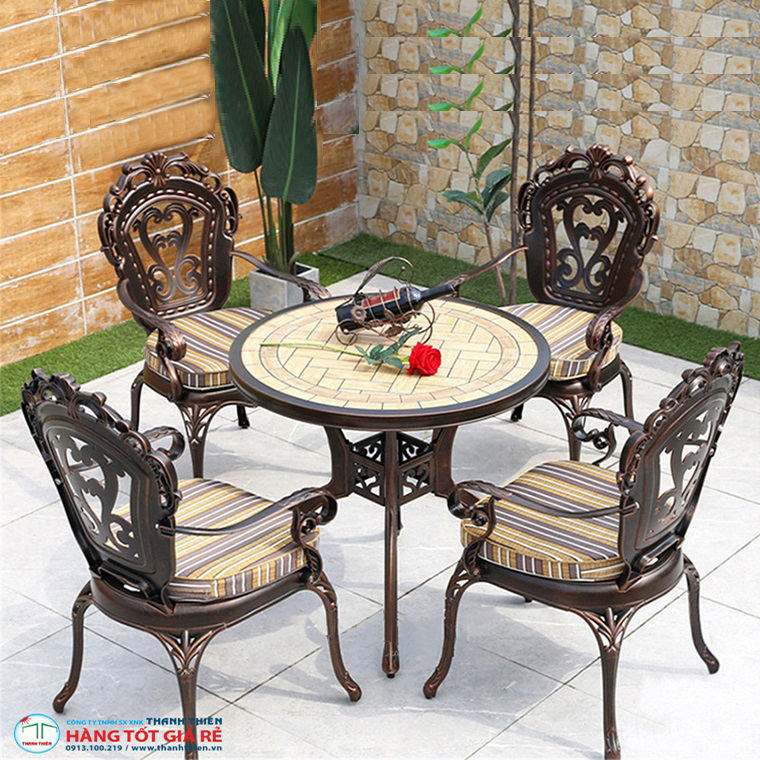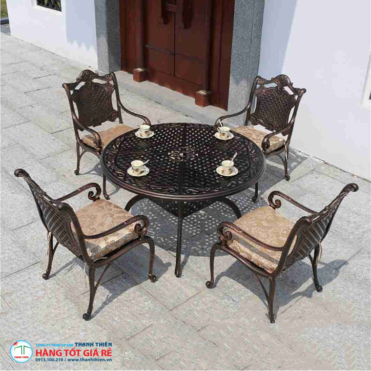 Tuy ngân sách đầu tư ban đầu cao nhưng vật liệu nhôm đúc của bộ sản phẩm này lại không bị gỉ sét, oxy hóa, độ bền cao. Thêm nữa dù bạn sử dụng lâu dài cũng không bị mối mọt tấn công, có thể đặt bộ bàn ghế nhôm ở bất kỳ nơi đầu dù là trong nhà hay ngoài sân vườn. Nó đảm bảo chịu được mọi tác động của thời tiết khắc nghiệt, đảm bảo duy trì sự bền đẹp lâu dài.