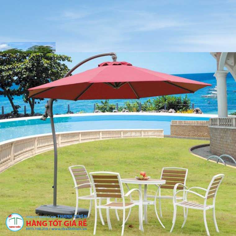 - Dù lệch tâm giúp che mưa, che nắng hiệu quả cho quán cà phê, quán nước, nhà hàng, khách sạn, khu resort,…
