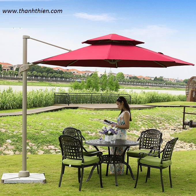 - Dù lệch tâm dùng để che mưa, che nắng cho sân vườn, biệt thự, tạo nên nơi nghỉ ngơi mát mẻ cho các thành viên trong gia đình.