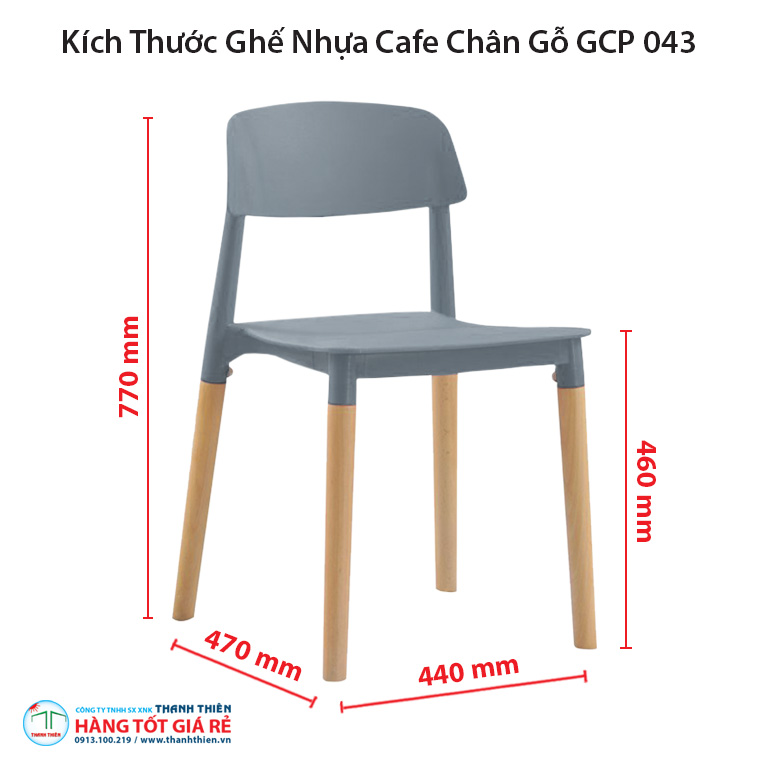 ♥♥ Kích thước ghế nhựa cà phê GCP 043: 770mm (cao) x 440mm (rộng) x 470mm (sâu)