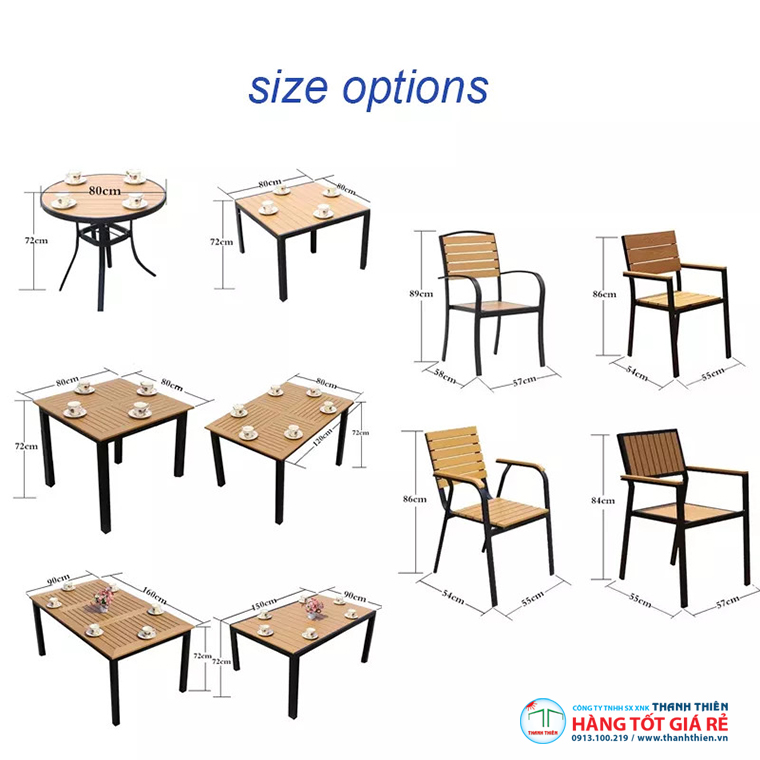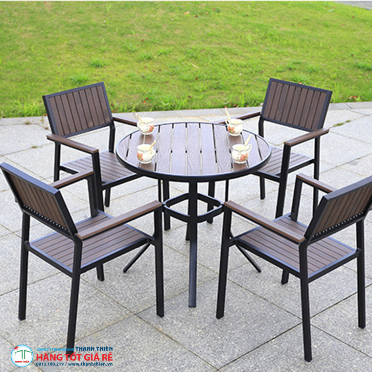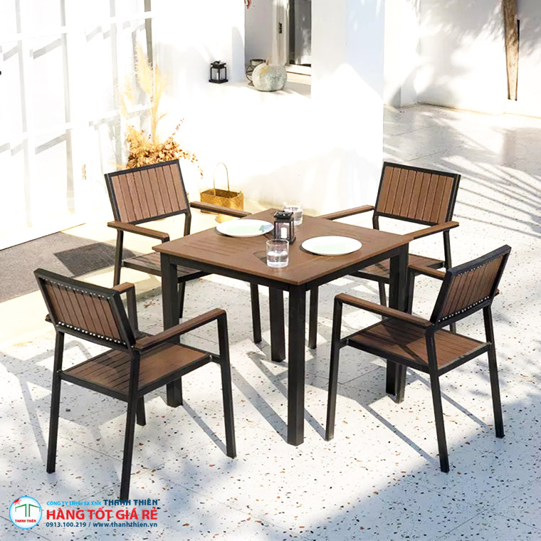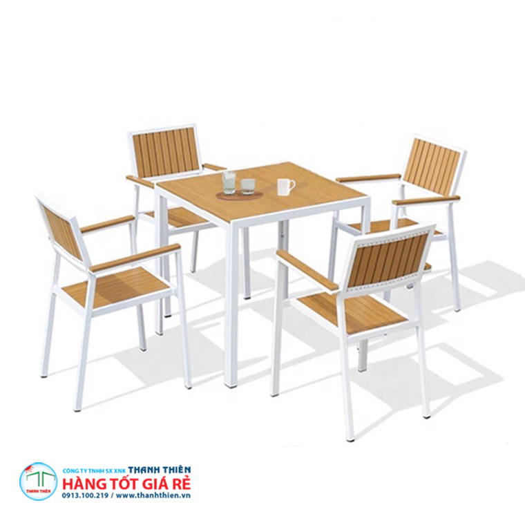 ♥♥ Khung ghế cafe được làm từ hợp kim nhôm với lớp ngoài cùng được phun sơn tĩnh điện cao cấp, đồng thời được kết hợp tinh tế với các nan nhựa giả gỗ Composite, mang lại cho sản phẩm vẻ hiện đại, sang trọng. Đặc biệt, chất liệu nhựa giả gỗ hấp thu nhiệt kém, do đó sẽ không tạo cảm giác nóng rát khi sử dụng ngoài trời dưới thời tiết nắng nóng, mang đến cảm giác dễ chịu và thoải mái cho người ngồi.