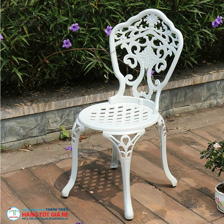 Ghế nhôm đúc GN 065 được thiết kế đẹp mắt kết hợp cùng chiếc bàn và họa tiết đồng bộ giúp chúng dễ dàng ứng dụng được cho nhiều không gian khác nhau.