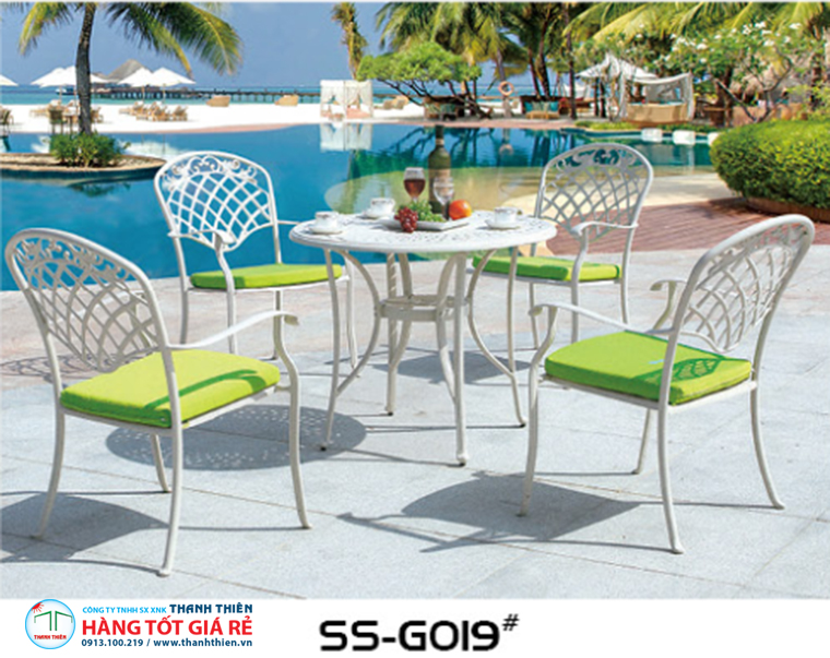 Một trong những sản phẩm bàn ghế café bán chạy nhất tại công ty Thanh Thiên hiện nay phải kể đến chính là ghế nhôm đúc GN 080. Nhờ thiết kế theo phong cách hiện đại, màu sắc trang nhã, bộ sản phẩm này dễ dàng bố trí ở trong sân vườn, ban công, khu hồ bơi, resort,… tạo nên một không gian thư giãn tuyệt vời và đầy lãng mạn cho mọi người.