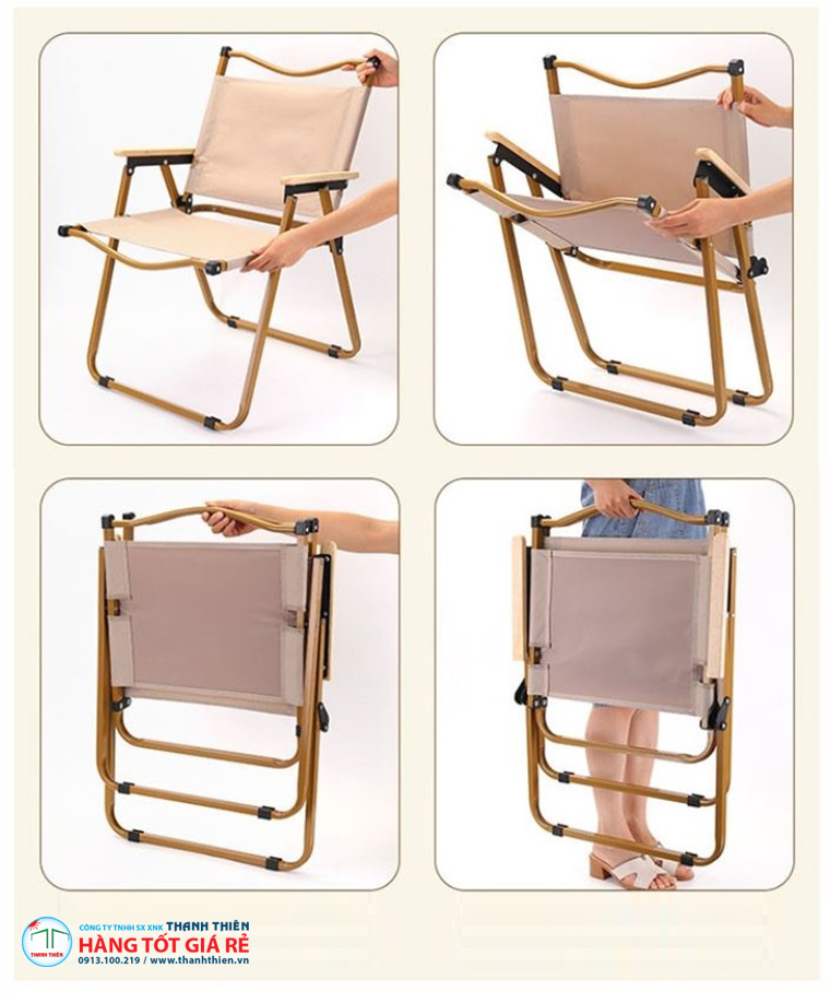 - Ghế xếp dã ngoại có thể gấp gọn, dễ dàng mang đi. Thiết kế của ghế sang trọng, đẹp mắt lại tích hợp nhiều công năng.